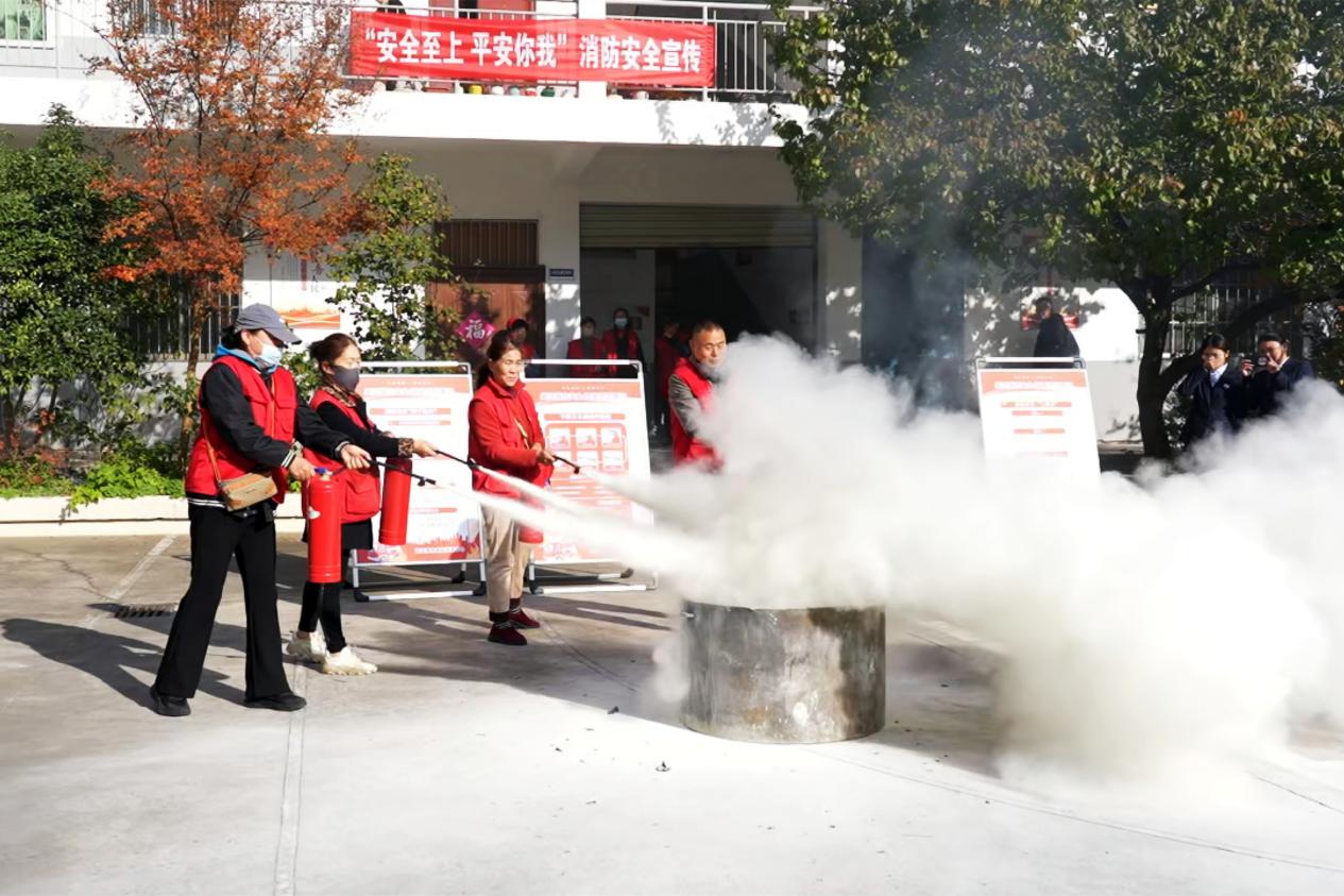 广场社区率先联合辖区单位连云港市就业训练中心开展“生命至上,平安你我”主题活动。在兴业时代花园,海州区消防救援大队海昌路消防站站长石宝岭亲自上阵,为居民现场演示了手提式干粉灭火器的正确操作方法,并详细拆解了“提、拔、握、压”四个关键步骤。在消防员的专业指导下,众多居民踊跃参与,亲自上手体验模拟灭火过程,在“真操实练”中掌握了扑救初起火灾的应急处置技能。