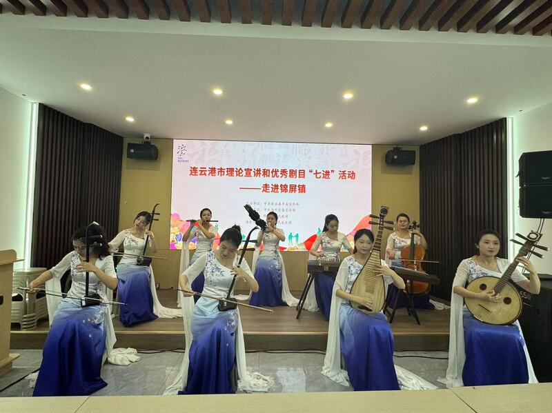 近日,连云港市理论宣讲和优秀剧目“七进”海州站巡演暨2025年“茉莉花开”文艺直通车活动在锦屏镇精彩上演。本次活动由中共连云港市委宣传部主办,中共海州区委宣传部、锦屏镇人民政府承办,江苏女子民族乐团倾情演出,为当地居民带来了一场融合理论宣讲与高雅艺术的惠民文化盛宴。