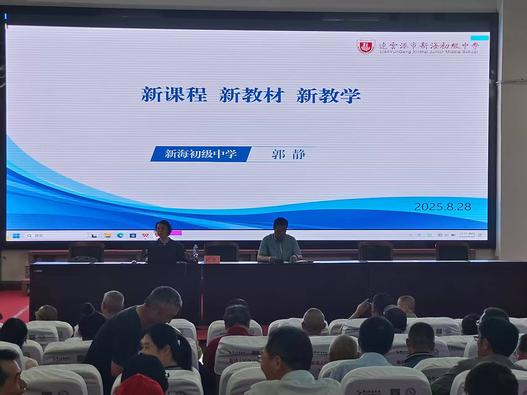 2025年8月28日,连云港市板浦实验中学在报告厅举行2025—2026暑期全员培训,本次培训邀请了连云港市教育局教研室王超老师和新海初级中学郭静校长开设专题讲座,板浦实验中学书记、校长徐怀松主持培训,全体教职工参与。